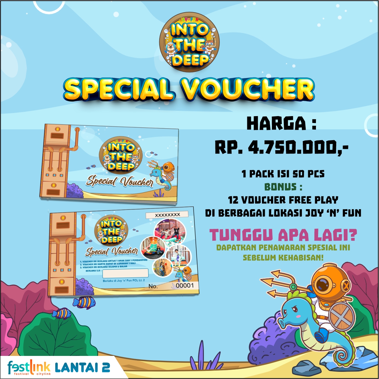 Rasakan serunya bermain tanpa batas dengan promo terbaru dari JOY N FUN! untuk pemesanan dan info lebih lanjut klik pada gambarÂ
