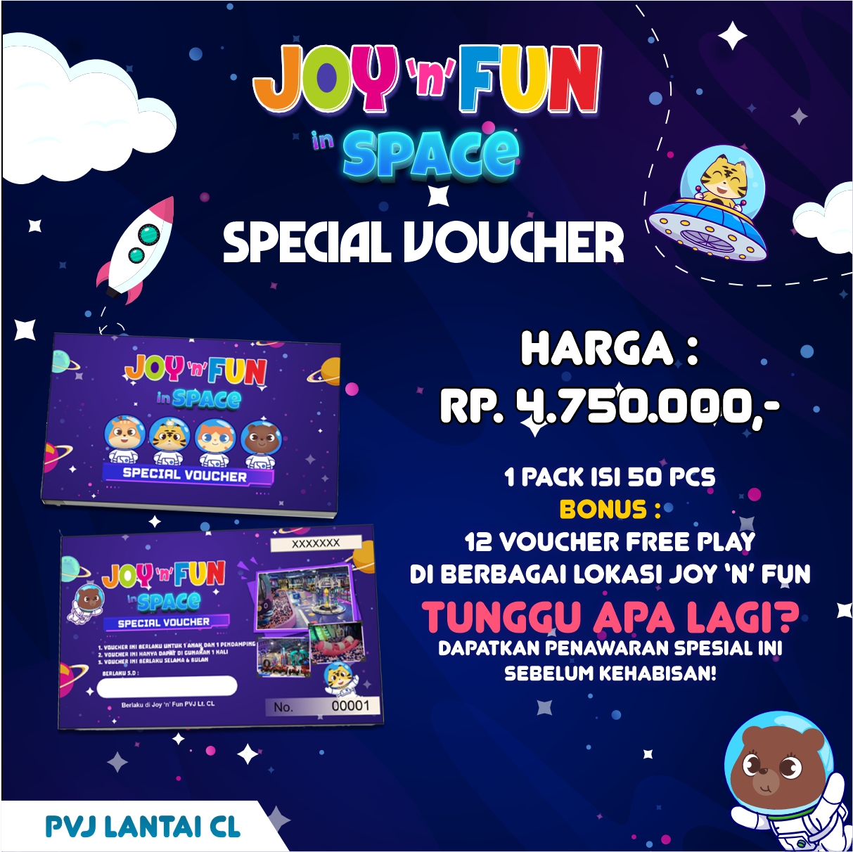 Joy N fun In Space (PVJ)                Jl. Sukajadi No.131-139 lantai CL, Bandung.              wa.me/6281111156739